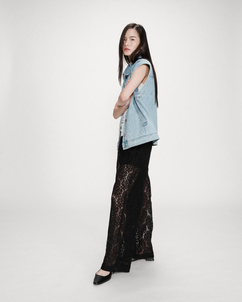 - Pantalón de encaje transparente