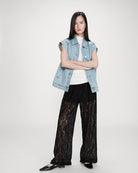 El pantalón amplio Vincent está trabajado en un encaje refinado para una silueta moderna y afirmada. El corte recto asociado a un forro hasta la mitad del muslo crea un juego de transparencia muy lindo