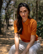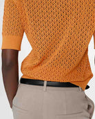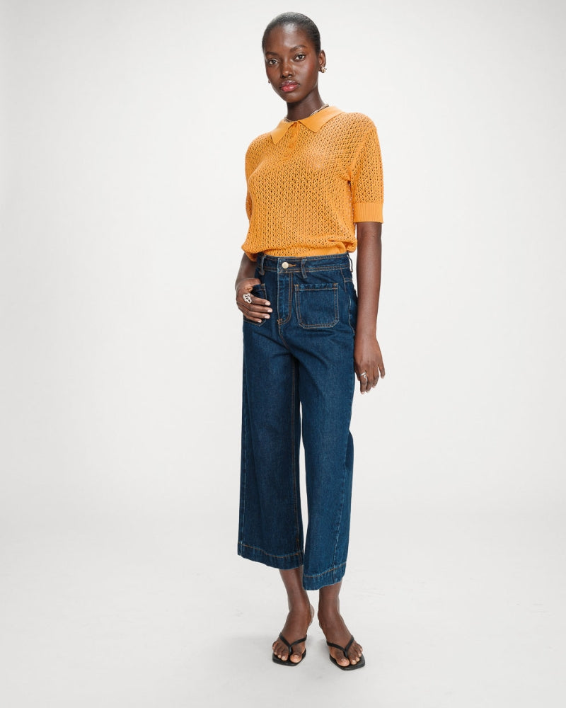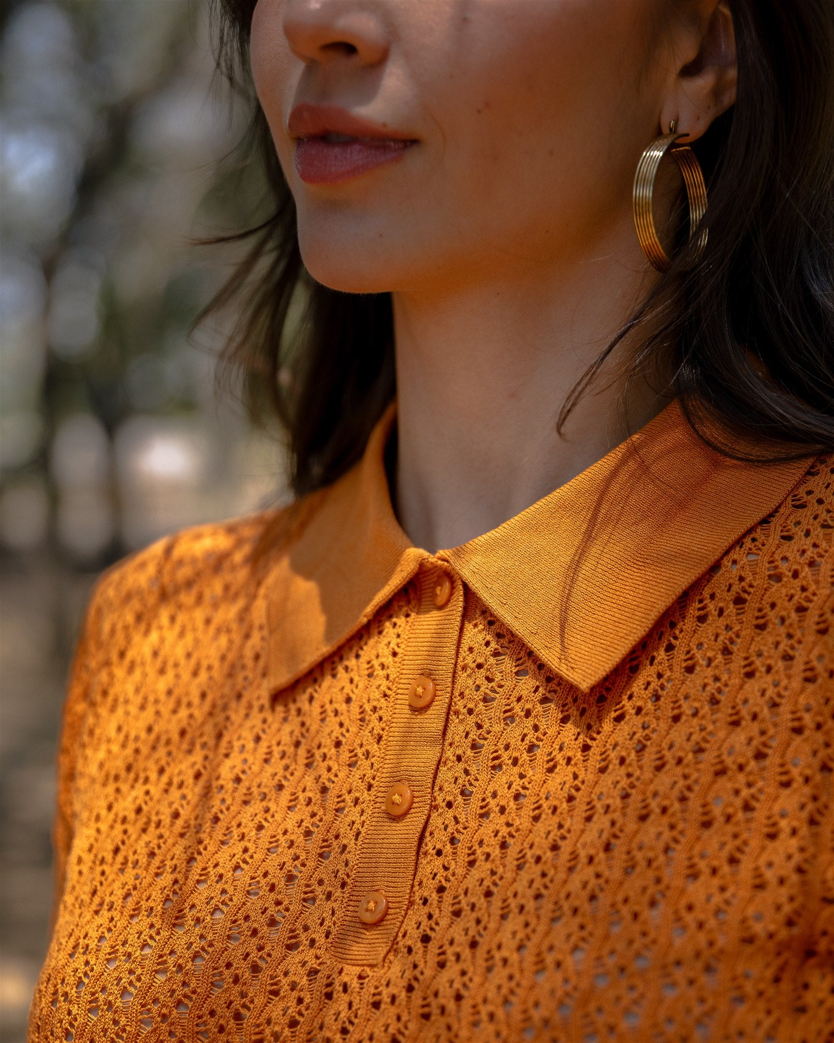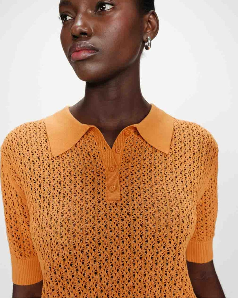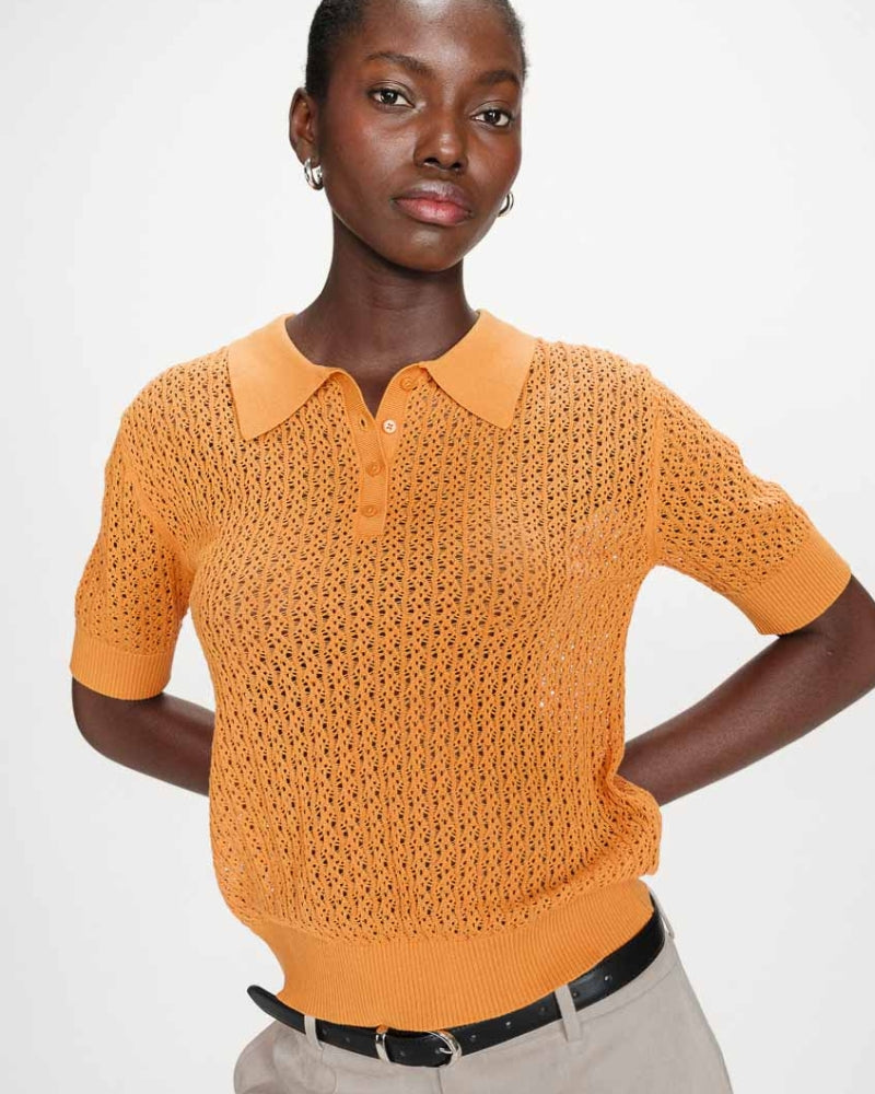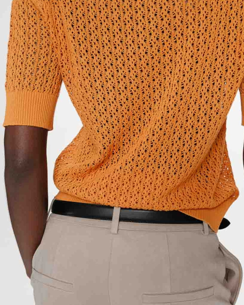Tejido en un punto ancho, el polo de manga corta Vathi es una pieza chic y casual. Sus acabados acanalados más estrechos en manga y cintura estructuran la silueta dejando también una caida fluida para un outfit casual y femenino.