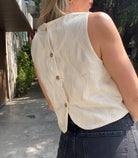 Top crudo sin manga para una silueta moderna y elegante . Ideal con una falda fluida