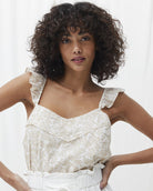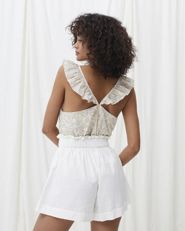 - Top con escote en V y tirantes con olanes y corte recto