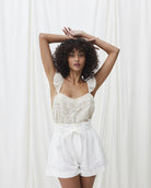 - Lo combinaríamos con unos shorts de tiro alto como el ETIENNE, un cinturón ancho y sandalias para un look bohemio.