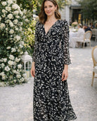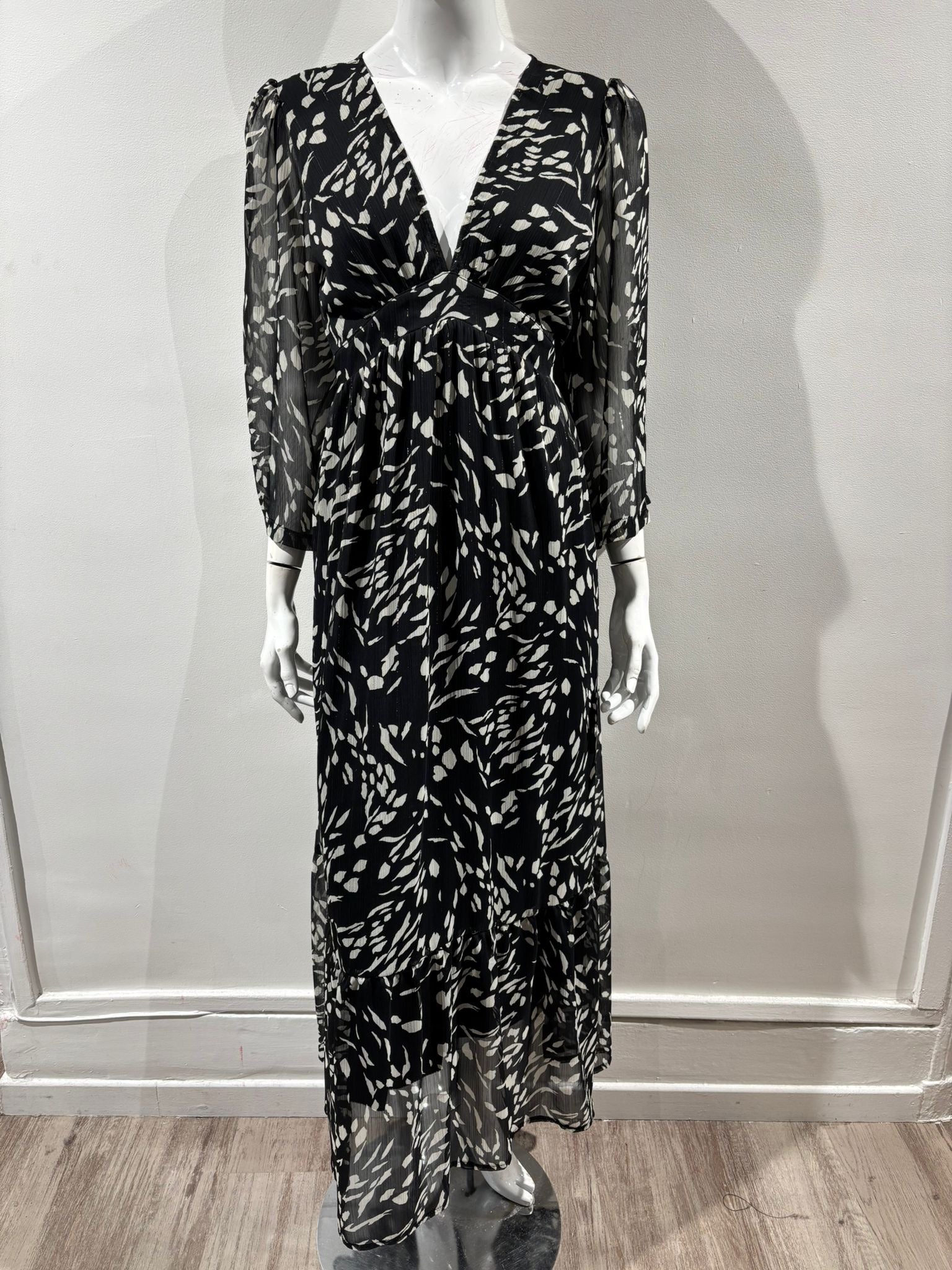 - Vestido forrado en cuerpo y falda con manga larga con transparencia