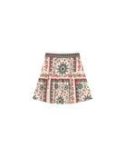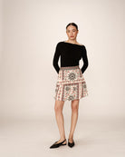 La falda corta Precieuse esta hecha con un estampado floral de inspiración bohemia con mucha originalidad. Su tela texturizada y el corte trapecio subliman la silueta para un look elegante y femenino.