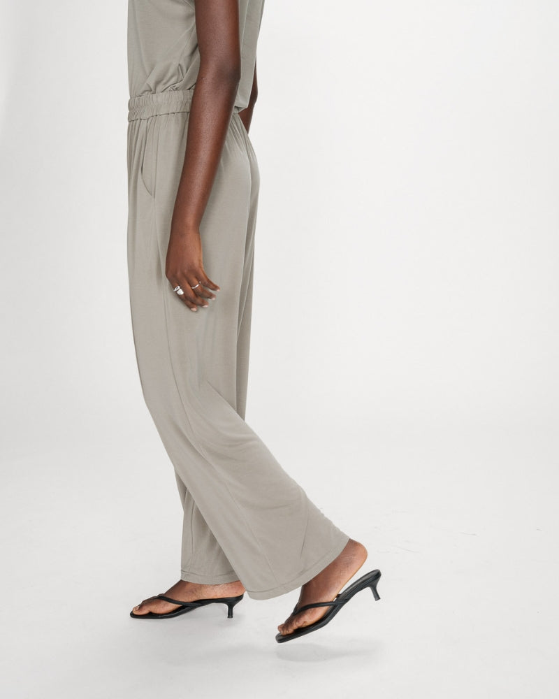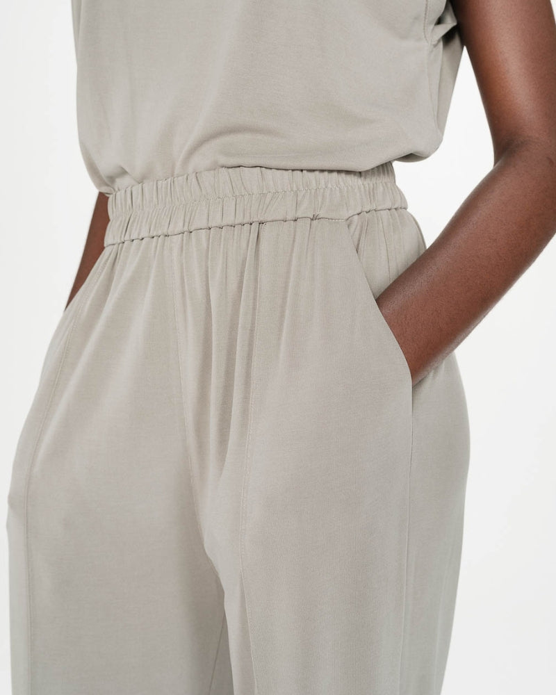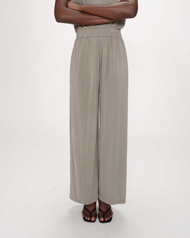 El pantalón ancho Pax está confeccionado a 70% de modal. Es un modelo muy cómodo y agradable con su cintura de elástico y una tela fluida.