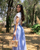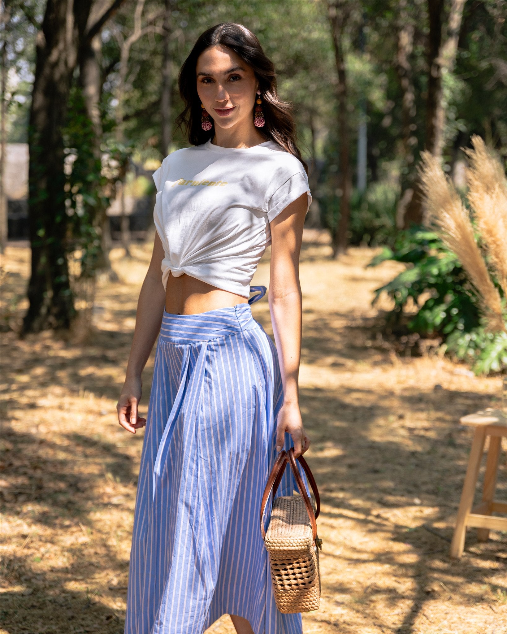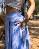 FALDA LARGA DE ALGODÓN DORIA AZUL RAYAS