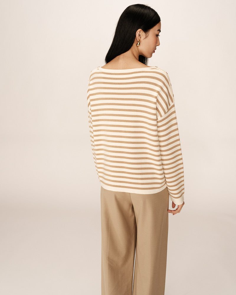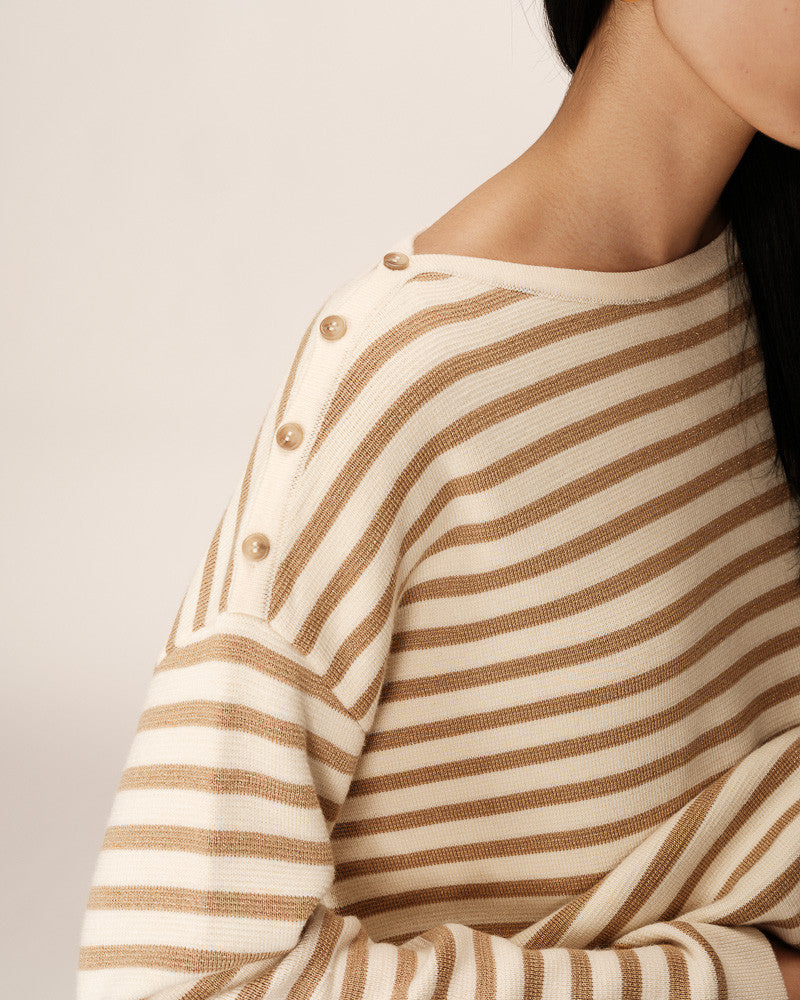 Suéter marinero francés con líneas doradas, super suave con su hilo de seda. Botones lindos en hombros