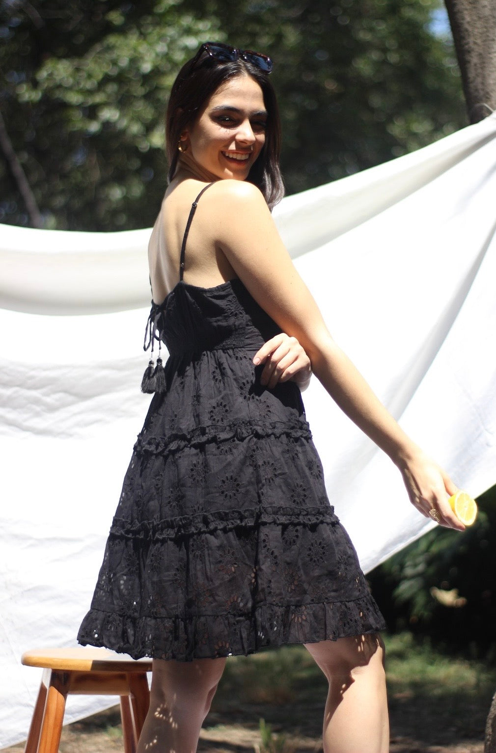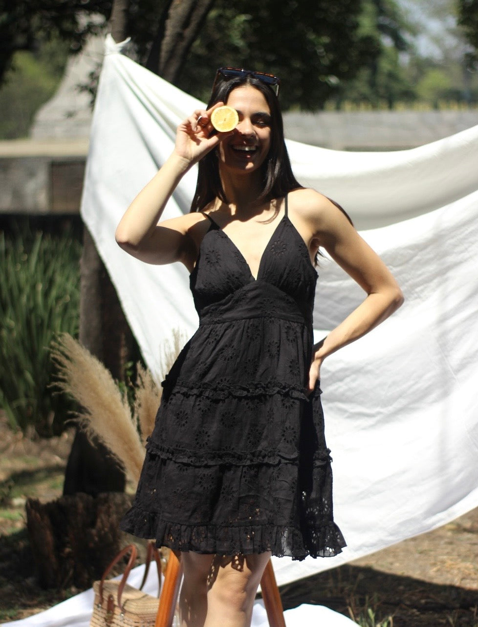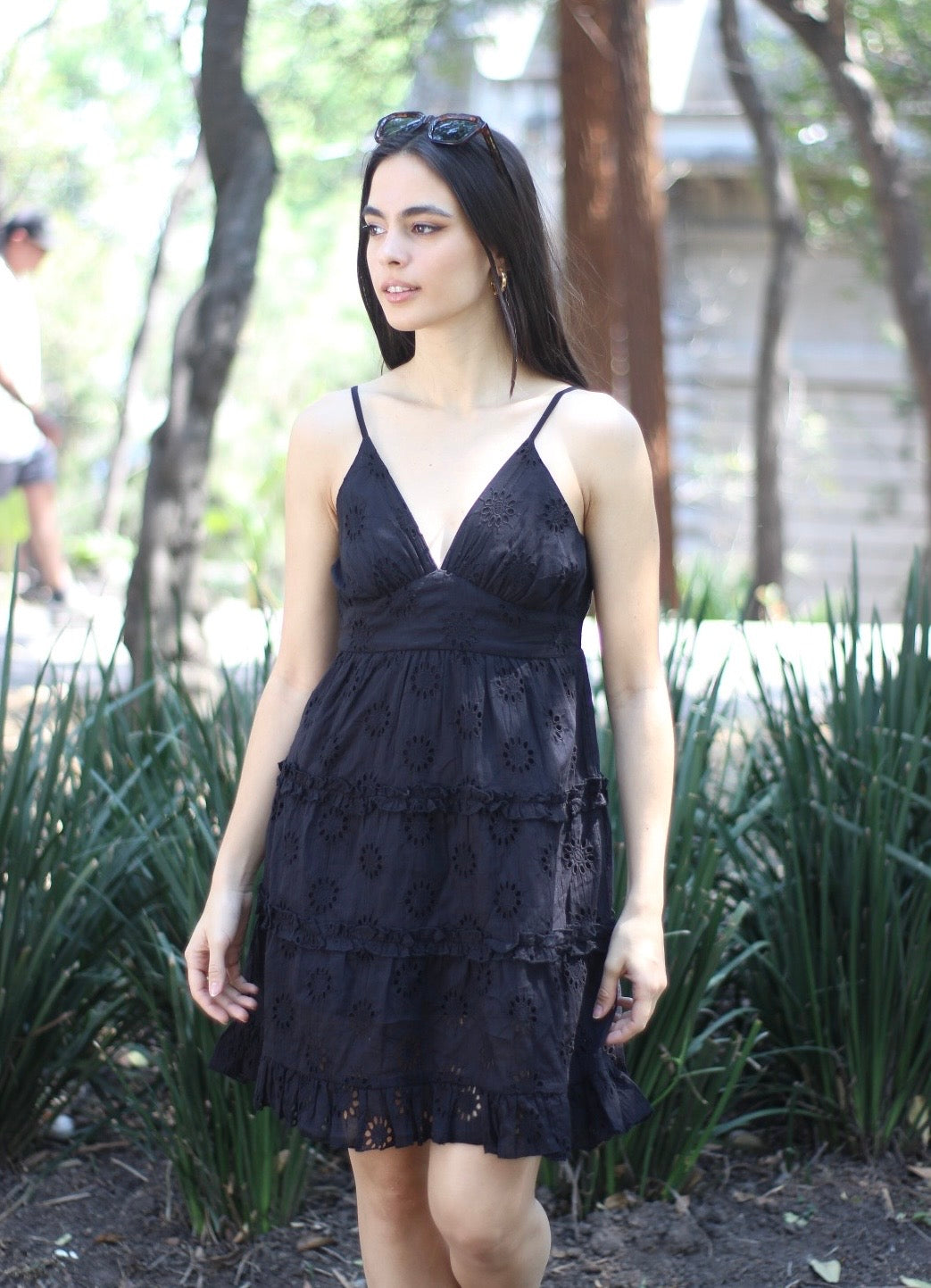 VESTIDO CORTO DE TIRANTES NEGRO SAHARA