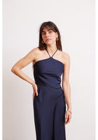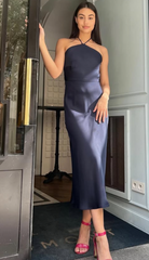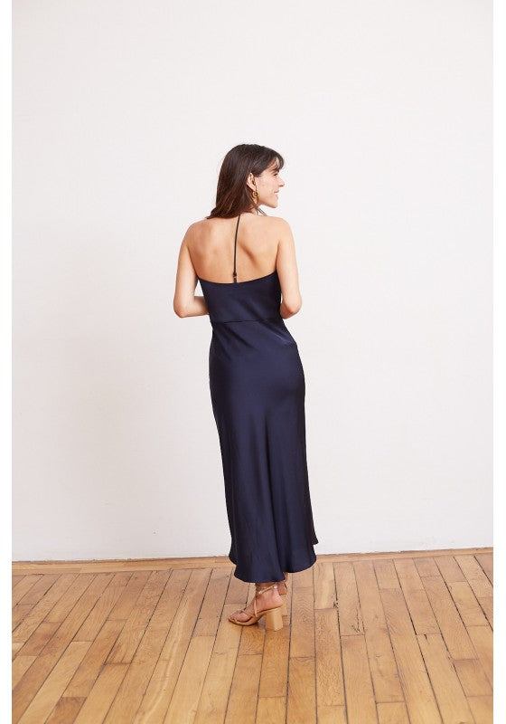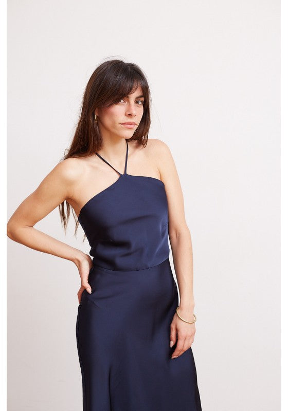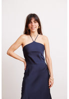 Vestido midi de satin color azul marino/casi negro