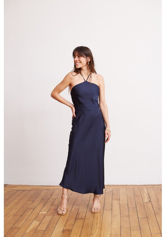VESTIDO DE SATIN AZUL EMILY