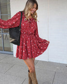 El vestido corto romántico Sentimentale seduce por su estampado floral con acentos 70s dando un toque retro encantador. El corte ampliado de la falda asociado con una cintura de elástico crea una silueta fluida y femenina.