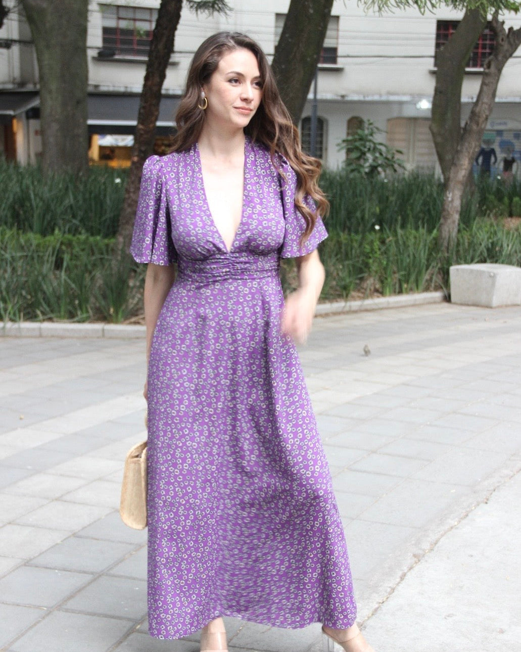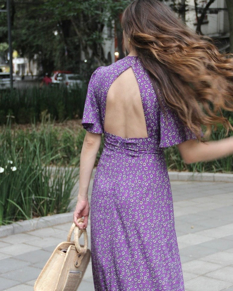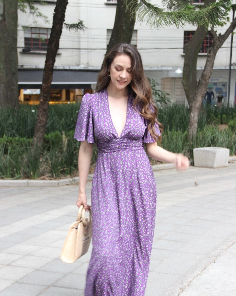 VESTIDO LARGO MORADO FLORAL GLORIA