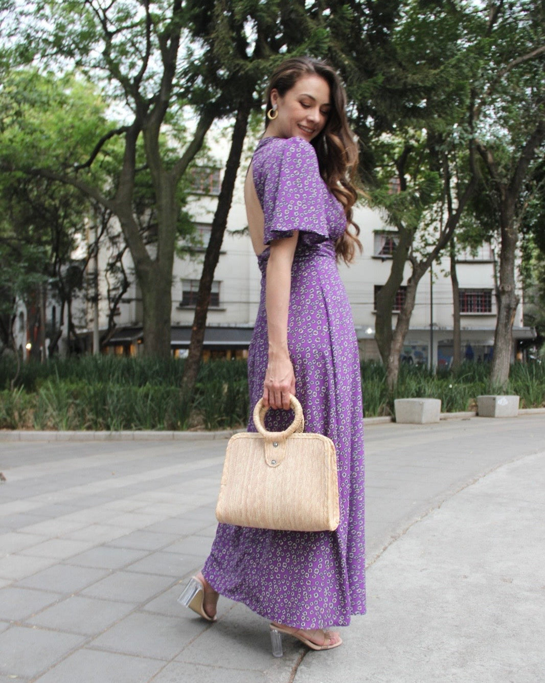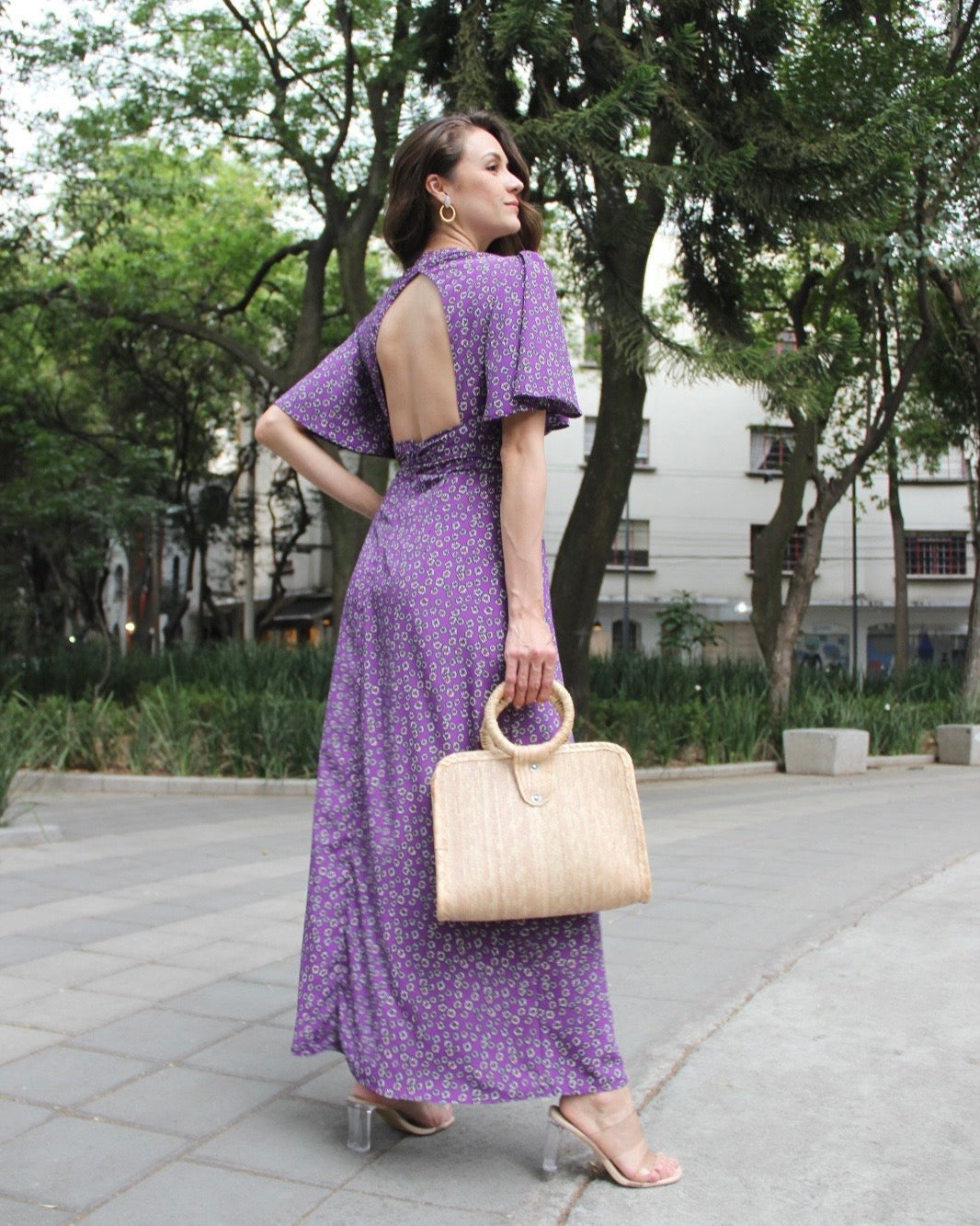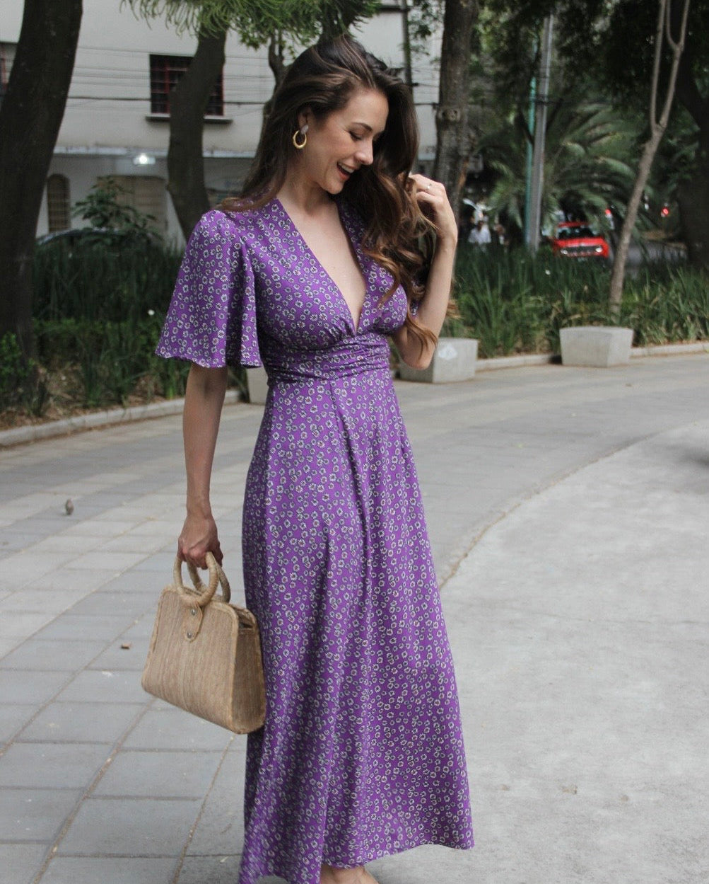 VESTIDO LARGO MORADO FLORAL GLORIA