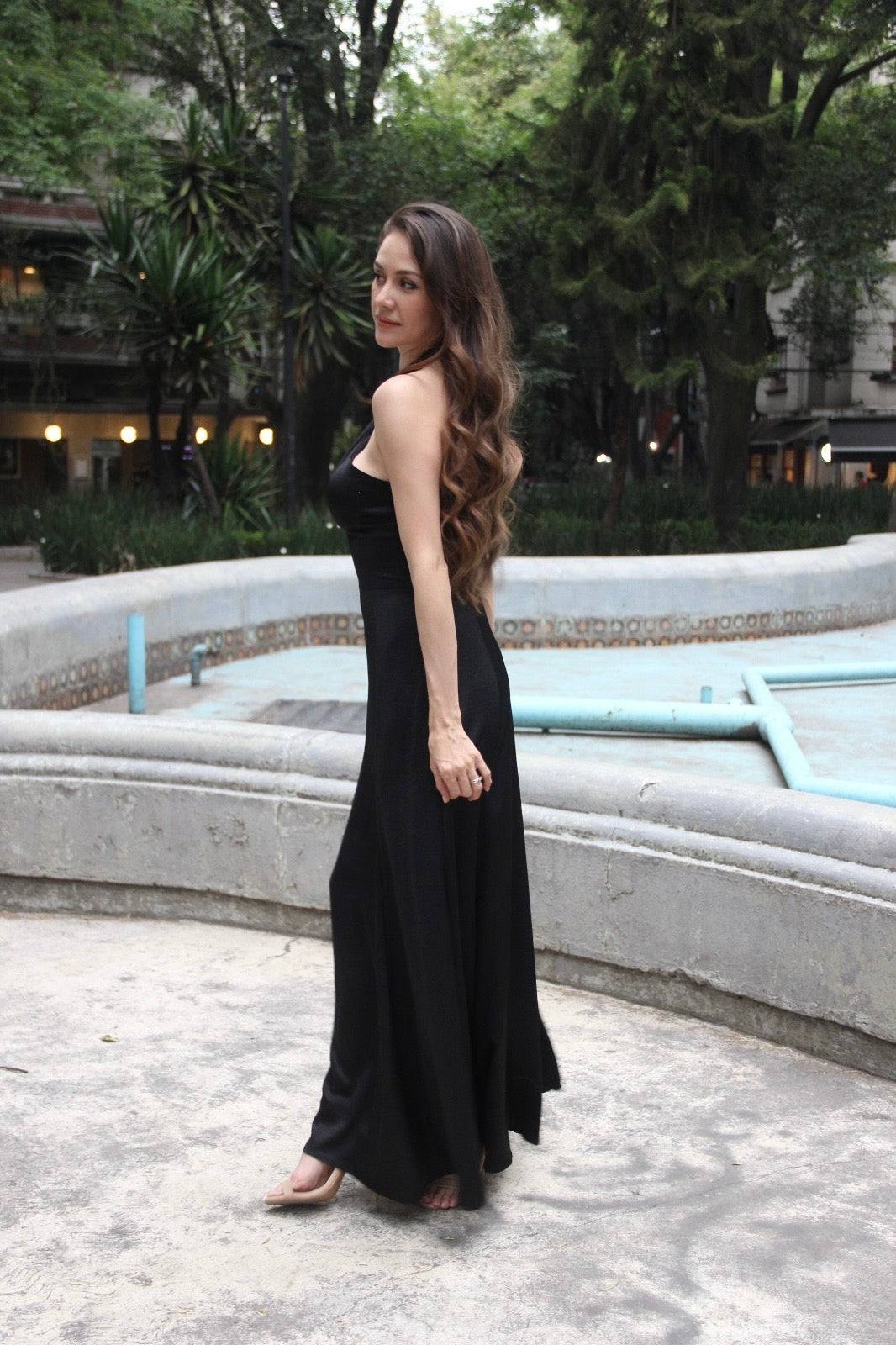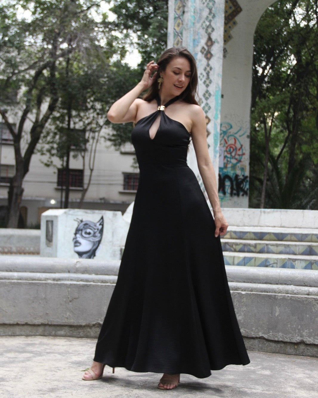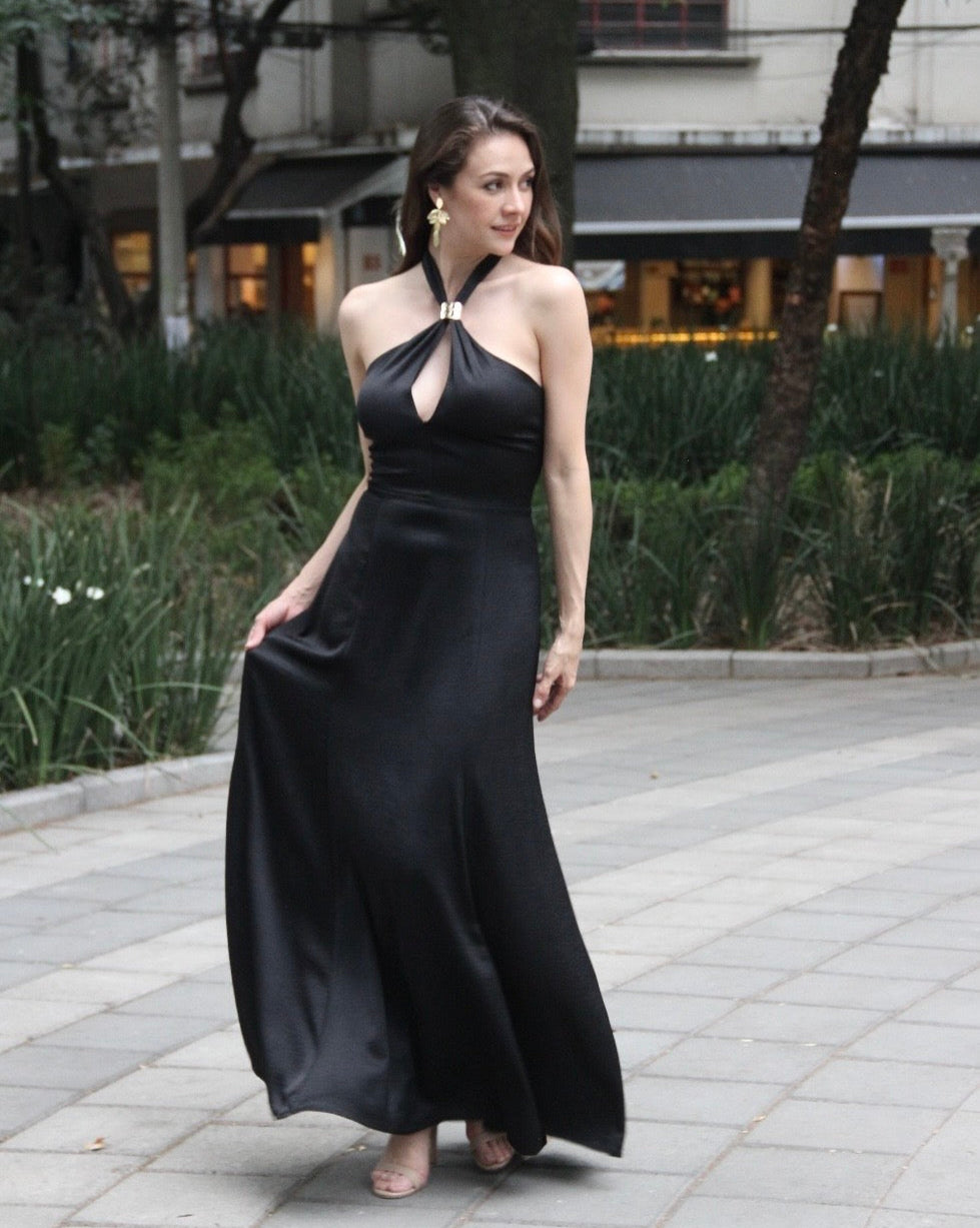VESTIDO SATIN NEGRO HALTER DIANE