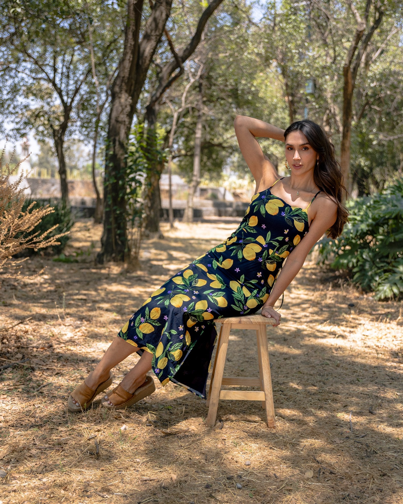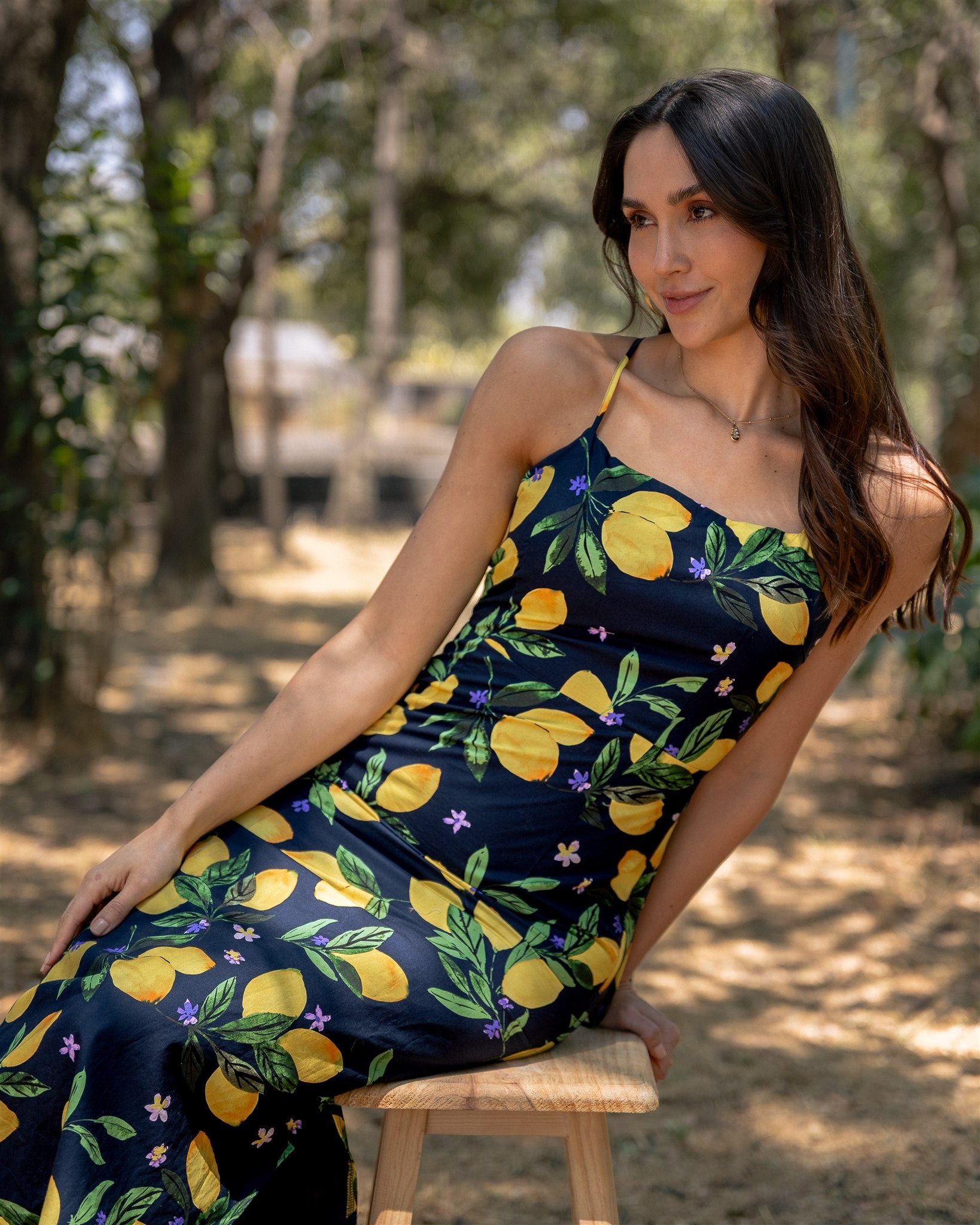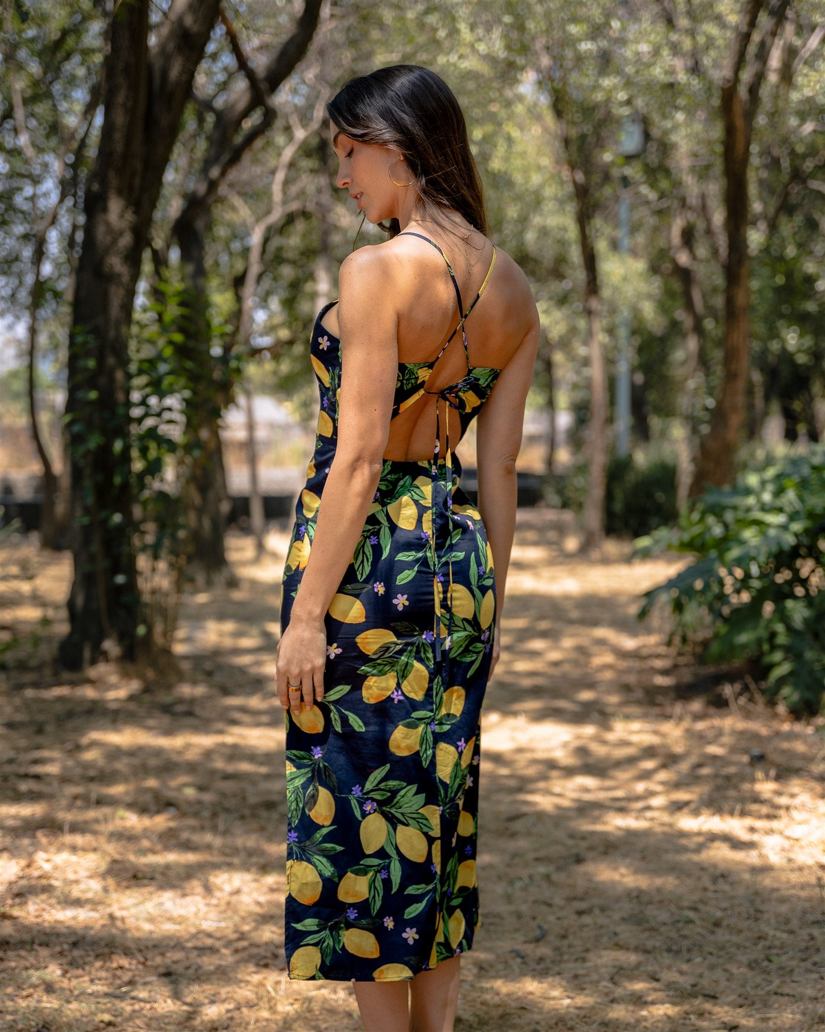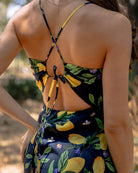Este vestido midi de algodón nos encanta por su diseño estampado de limones :) Su corte recto, escote cuadrado y tirantes finos ajustables a amarrar en la espalda para proponer una silueta moderna y minimalista. El modelo esta confeccionado y forado en una tela de fibras naturales.
